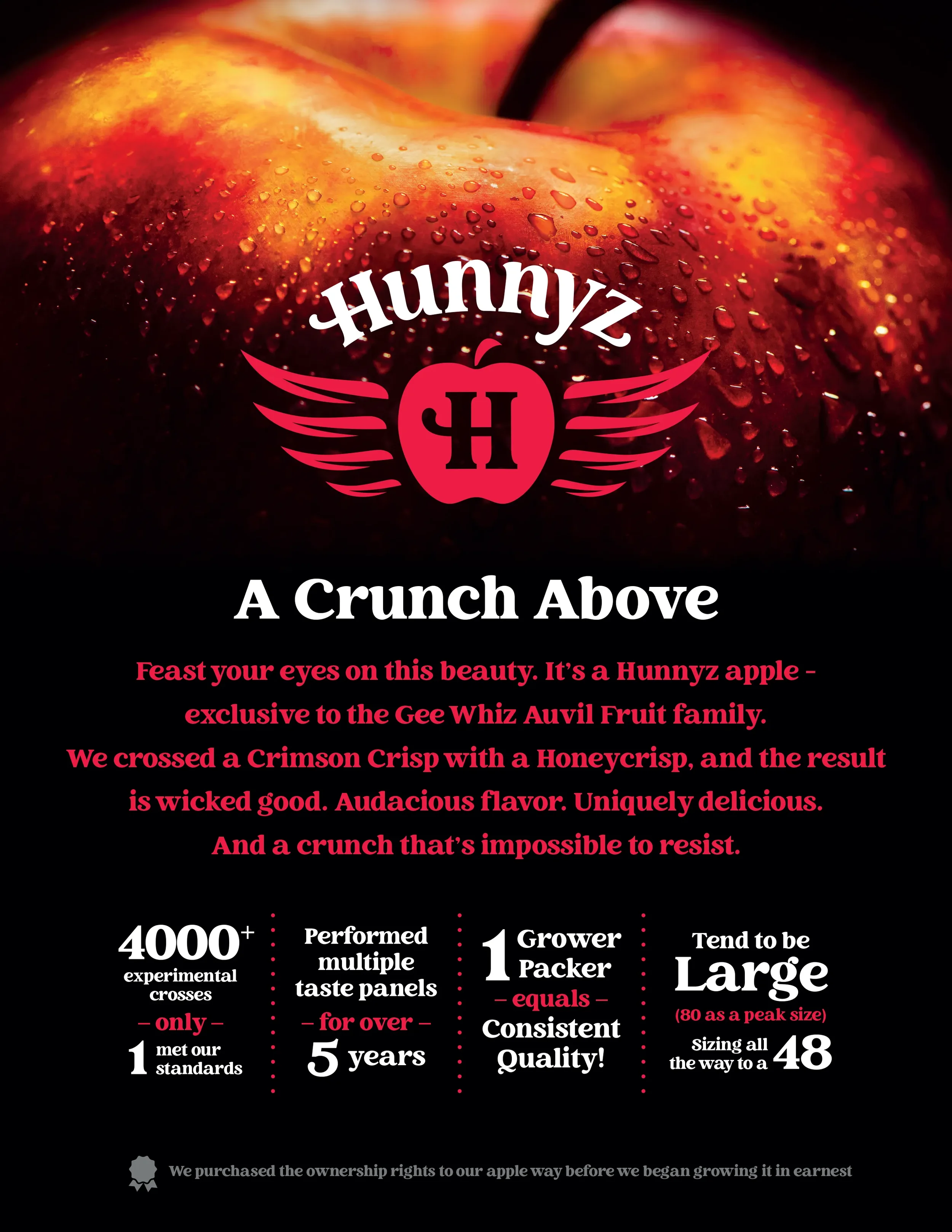 Founder Grady Auvil had a friend that once told him his fruit tasted so delicious that it often caught people by surprise. He relayed that when people first experienced the perfectly balanced sweetness, they would exclaim, “Gee whiz, that’s a good piece of fruit.” Ever since, the Gee Whiz label has marked our premium grade fruit, which is recognized across the globe as a symbol of unrivaled quality.